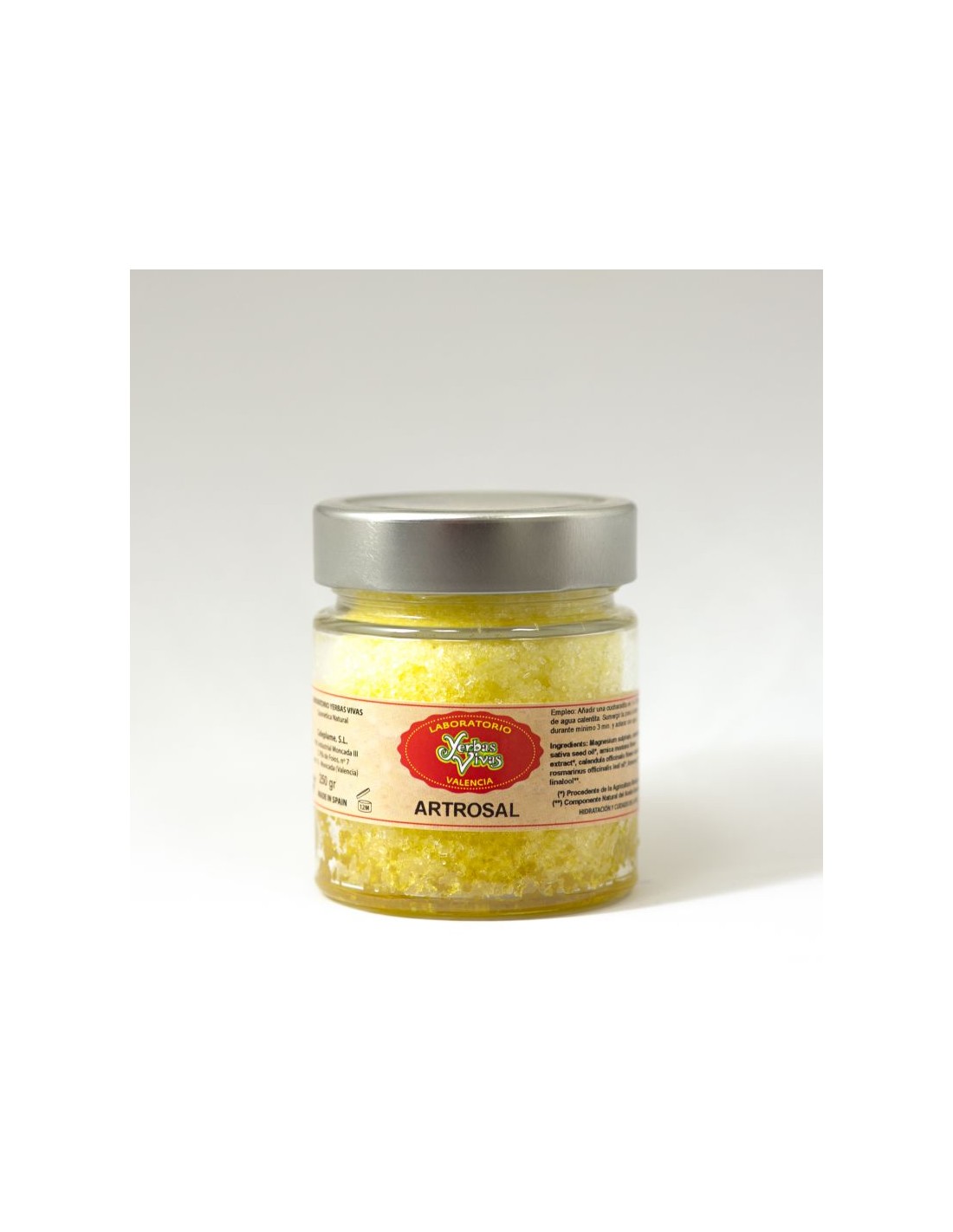 Sal de baño con sales de Epsom, Árnica, aceite de Cáñamo y Romero para pieles con problemas musculares y articulares.