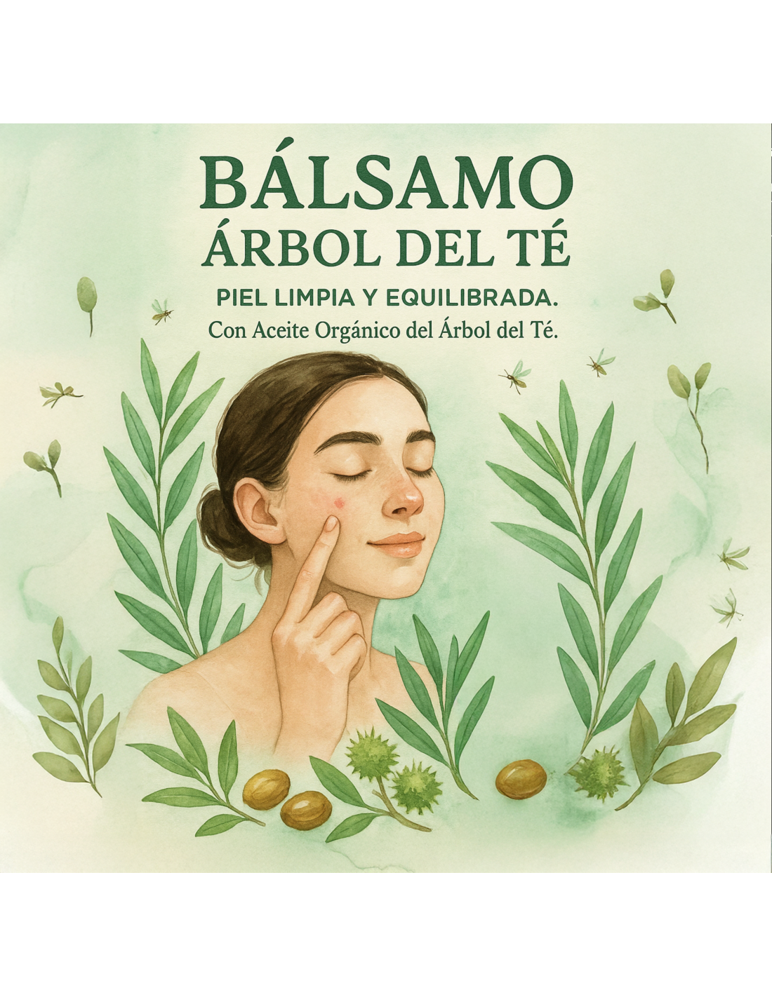 Bálsamo concentrado de Árbol del Té con aceite de Jojoba ecológico, Aceite de Chia y de Ricino es ideal para el cuidado de pieles grasas con tendencia a imperfecciones.