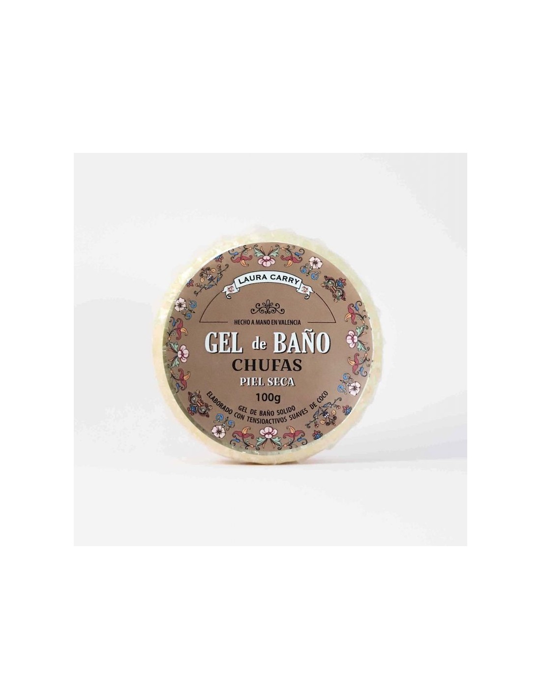 Pastilla de Gel de Baño Sólido de Chufas . Jabón y leche corporal, todo en un uno. Textura ligera y untuosa.