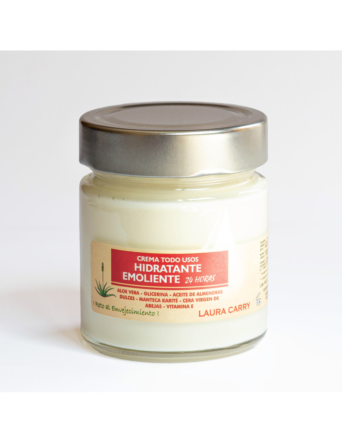 Crema muy hidratante y emoliente para el cuidado de la piel de toda la familia. Enriquecida con pulpa de Aloe vera y manteca de Karité. Para la hidratación corporal diaria, utilizar después de la ducha, en zonas más rebeldes como talones, manos, codos resecos aplicar dos veces al día. Cuida tu piel de la forma más natural con: