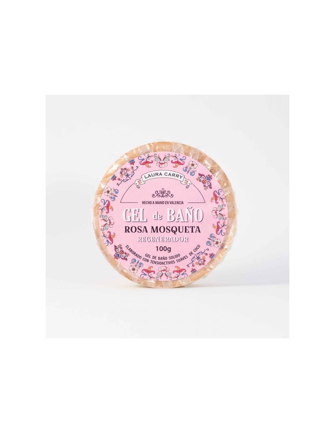 Pastilla de Gel de Baño Sólido de Rosa Mosqueta . Jabón y leche corporal, todo en un uno. Textura ligera y untuosa.