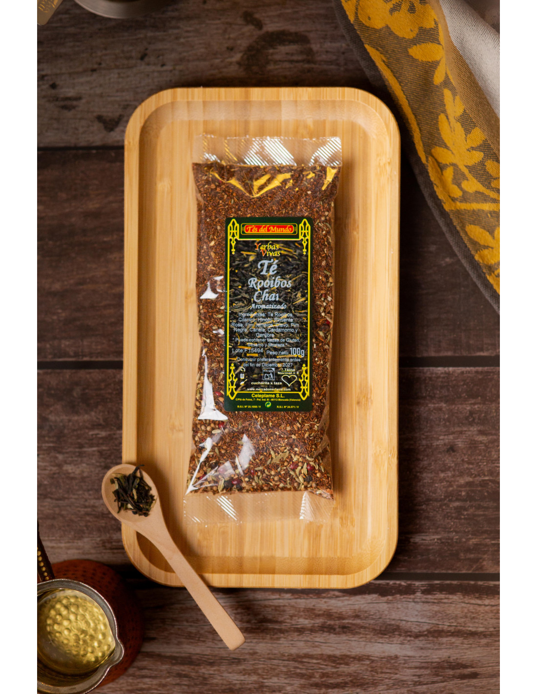 Infusión de base de rooibos combinada con una cuidada selección de especias: semilla de cilantro, hinojo, pimienta rosa, pimienta de Jamaica, clavo, pimienta negra, canela, cardamomo y jengibre. Una mezcla cálida y aromática, sin teína, ideal para reconfortar cuerpo y mente en cualquier momento del día.