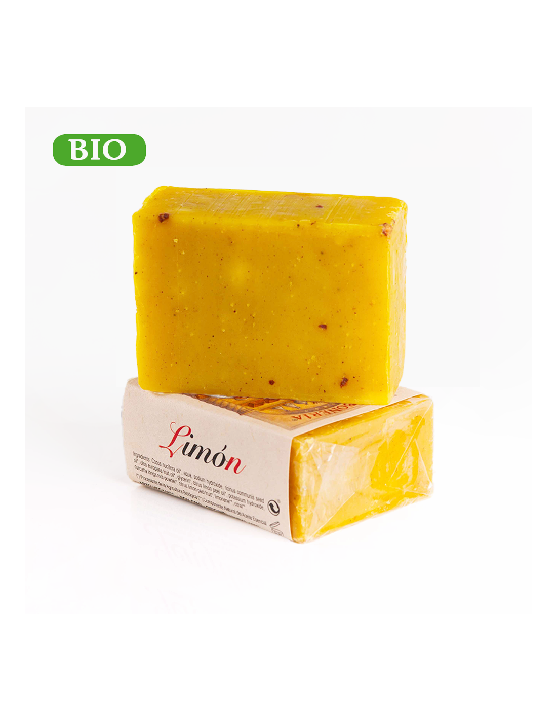 Jabón elaborado con el antiguo proceso de saponificación en frio, realizado artesanalmente por nuestro maestro jabonero valenciano José Carrasco, obteniendo un jabón rico en glicerina natural de la saponificación, suave, cremoso y de gran calidad. Todas las materias primas son de origen natural y más del 90% ecológicas. Entre sus ingredientes destacamos las propiedades aromáticas y refrescantes del Limón. Recomendado para la limpieza y cuidado de todo tipo de pieles.