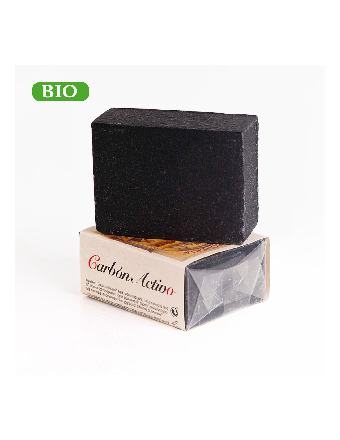 Jabón ecológico elaborado con Carbón activado 100% natural. El carbón activado actúa como un imán, absorbiendo y eliminando las impurezas, toxinas y contaminación ambiental depositada en la piel. Jabón muy recomendado en la higiene diaria, que limpia y desintoxica tu piel en cada lavado, de una forma sencilla, cómoda y natural.