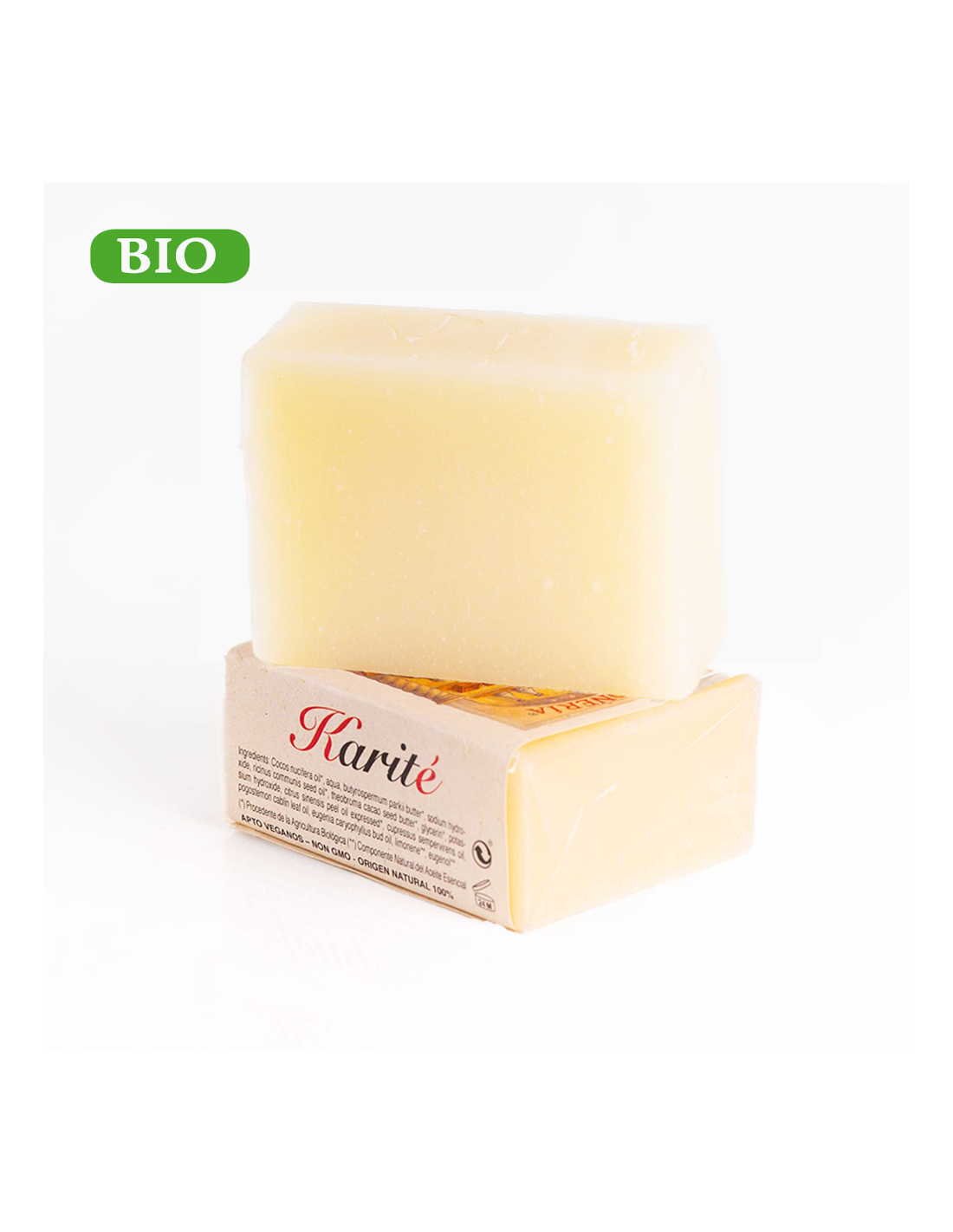 Jabón ecológico elaborado con Manteca de Karité BIO. Esta manteca es un eficaz regenerador natural que activa la formación de colágeno, retrasando la formación de arrugas. Da flexibilidad y elasticidad a la piel evitando la formación de las líneas de expresión.